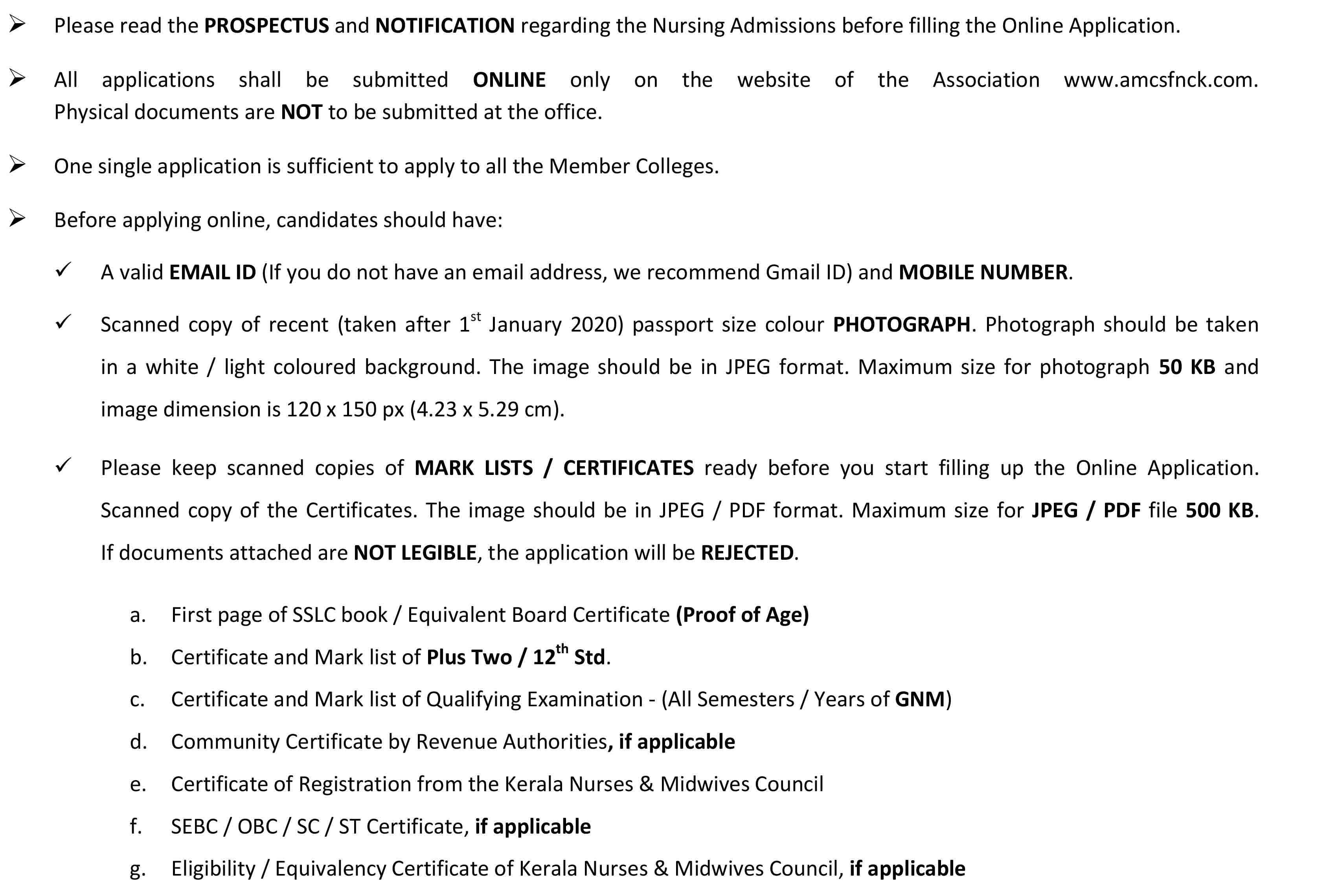 We, the AMCSFNCK have NOT Appointed any Agents / Mediators for Nursing Admissions in our 35 Member Colleges. Admissions are solely through AMCSFNCK website only. |